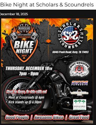 Impairment Policy:  The consumption and/or use of intoxicating substances such as alcohol or drugs is a serious personal responsibility involving the safety of family, riding friends and the individual HOG member. Consumption of such substances before or during a motorcycling activity is not safe, responsible behavior. Houston Area #1 H.O.G. Chapter #5255 does not allow the use of alcohol, drugs, or intoxicating substances before or during a riding event and does not furnish those at Chapter rides. Riders whose skills are observed or suspected to be impaired before riding cannot join the ride. Riders using alcohol, drugs, or intoxicating substances while riding will be asked to leave the ride. It is the responsibility of each Chapter member to support the consistent enforcement of this policy.
