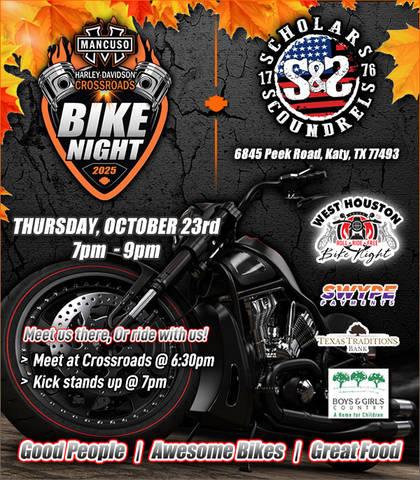Join us for Bike Night @ Scholdars & Scoundrels Katy with good people, awesome bikes and great food!