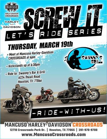 Join us for our Screw It, Let’s Ride Series on Thursday, March 19th as we ride to Swanny‘s Bar and Grill.